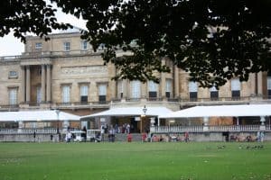 Im Garten des Buckingham Palace wirkt dann alles wie eine große Gartenparty mit Tee.